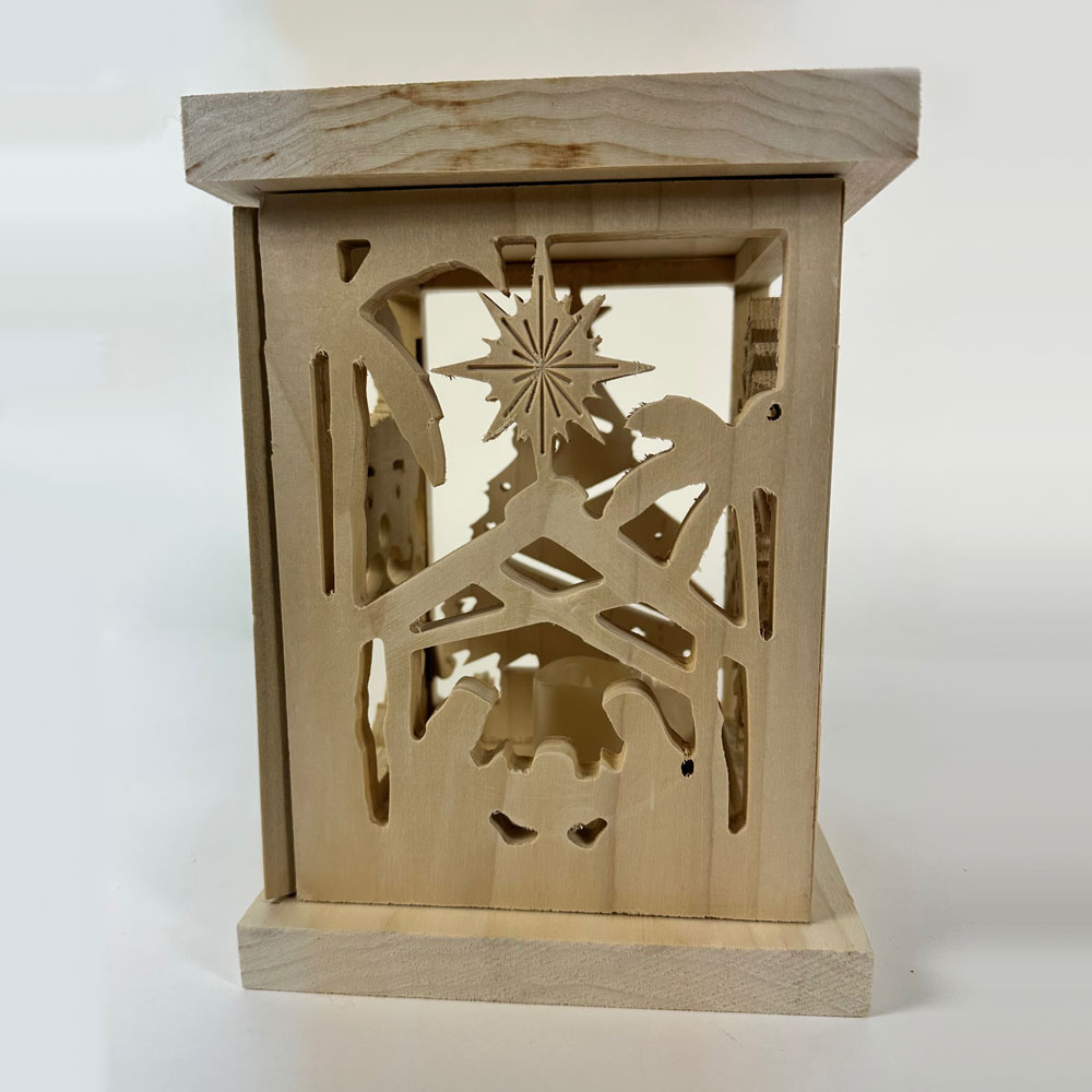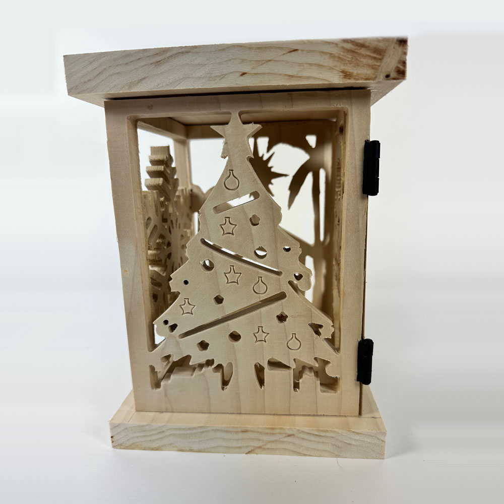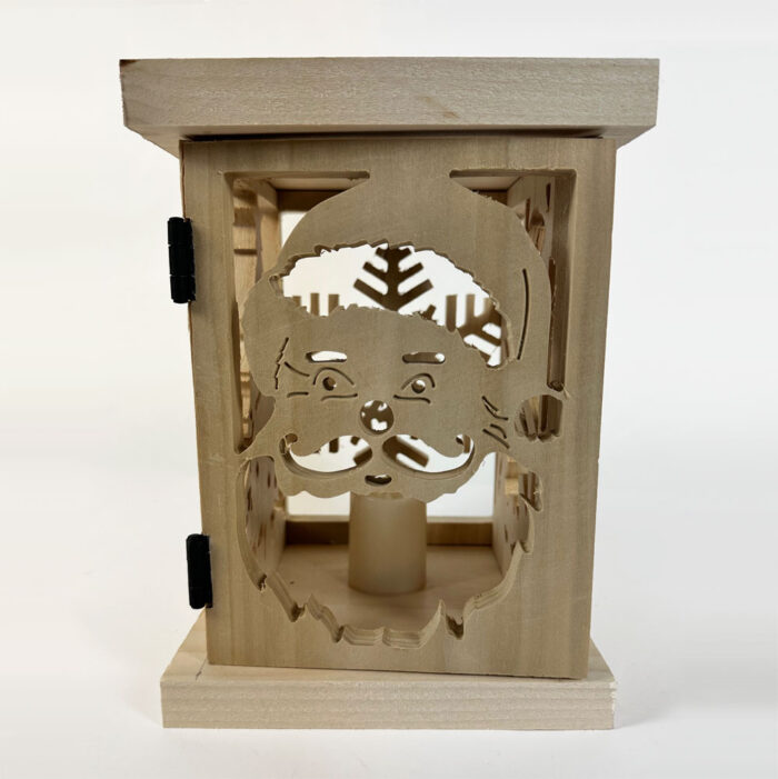 Christmas Four Sided Lantern with a hinged door  to place and remove the light.