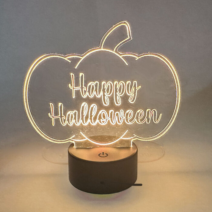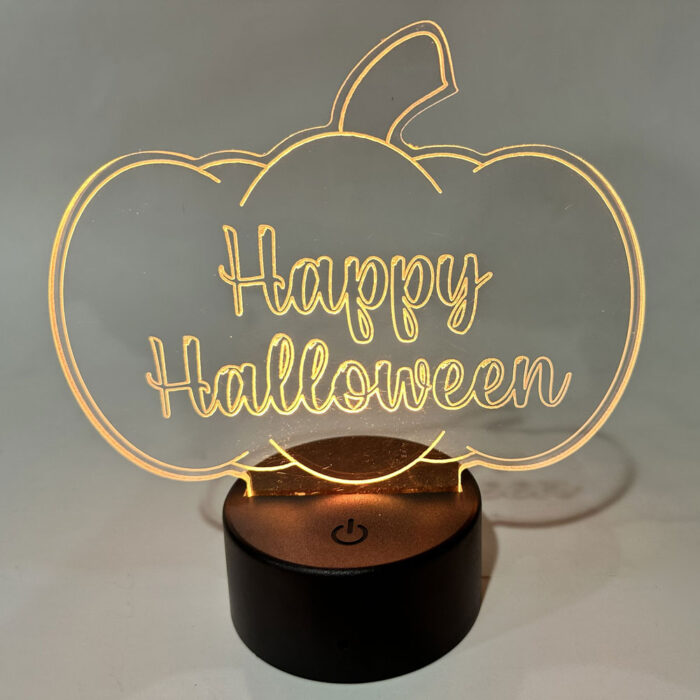 Celebrate Halloween with a cheerful twist using the Happy Halloween LED Light Up Pumpkin — the perfect way to welcome trick-or-treaters and add seasonal charm to your décor. This eye-catching piece features a crisp acrylic pumpkin sculpture that sits atop a bright LED base, casting a warm, inviting glow that brings the spirit of Halloween to life.