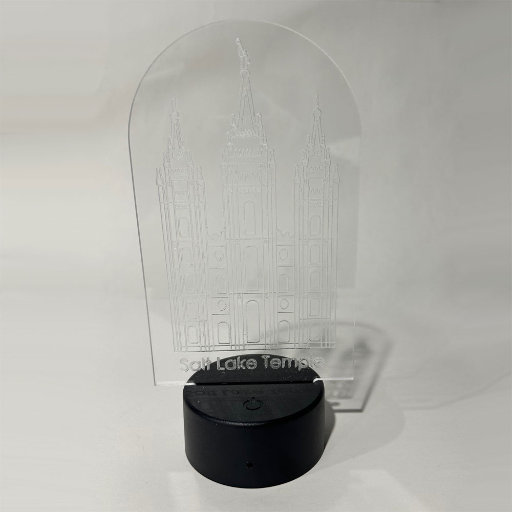 The LDS Salt Lake Temple in acrylic with a LED light base.