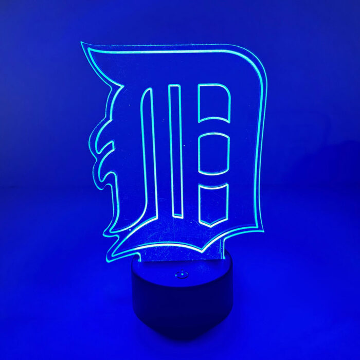LED light up acrylic Old English D for the Detroit Tigers fan.  The round LED base is 1.5″ tall and 3.5″ diameter.